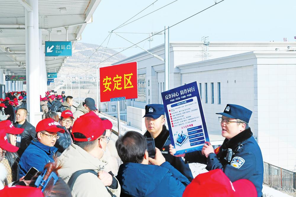 記者了解到,這批務工人員來自定西市各縣區(qū),既有返崗務工人員,也有新聘務工人員。為保障此次高鐵務工專列順利開行,蘭州鐵路公安處定西北站派出所積極與定西北車站、客運部門通聯,專門開辟“綠色通道”,暢通進站、安檢、檢票等進站環(huán)節(jié),劃定專門候車進站區(qū)域,同時增派警力逐一引導務工人員有序進站,幫助提拿大件行李、講解防范電信詐騙小妙招,用心用情保障務工旅客乘車安全。