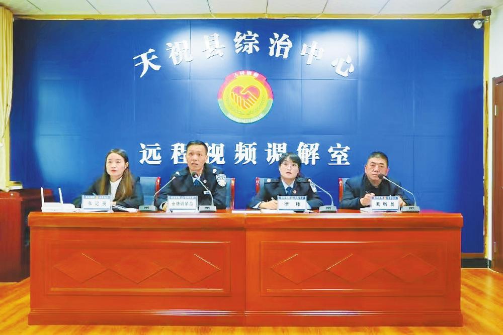 “針對(duì)全縣地域面積廣、群眾居住分散的實(shí)際,我們探索建立‘天涯若比鄰、服務(wù)零距離’遠(yuǎn)程視頻調(diào)解工作法,縣、鄉(xiāng)綜治中心視聯(lián)互通,開展‘線上’法律咨詢、政策解答和糾紛化解,有效降低群眾‘來回跑’的成本。”天??h委政法委副書記俞天煒說,通過建立“線上與線下結(jié)合、點(diǎn)上與面上結(jié)合、專業(yè)與兼職結(jié)合”的開放式、多層次、寬領(lǐng)域心理健康服務(wù)體系,全力打造“全民塑心、健康華銳”品牌,提升群眾心理健康指數(shù),疏導(dǎo)不良情緒,化解社會(huì)矛盾,維護(hù)社會(huì)穩(wěn)定。