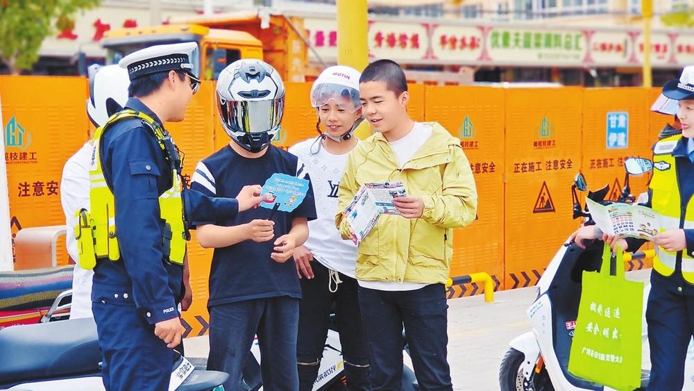 民警向駕駛員宣傳交通安全注意事項。5月12日,廣河縣公安局交警大隊組織開展防災(zāi)減災(zāi)日宣傳活動。 新甘肅·甘肅法治報通訊員馬永祥攝