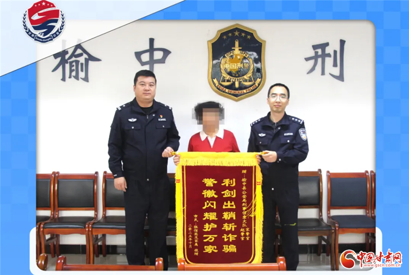中國(guó)甘肅網(wǎng)11月3日訊(西北角·中國(guó)甘肅網(wǎng)記者 程?。┙?,蘭州市的張女士將一面印有“利劍出鞘斬詐騙 警徽閃耀護(hù)萬(wàn)家”的錦旗,送到了榆中縣公安局刑警大隊(duì)辦案民警手中。