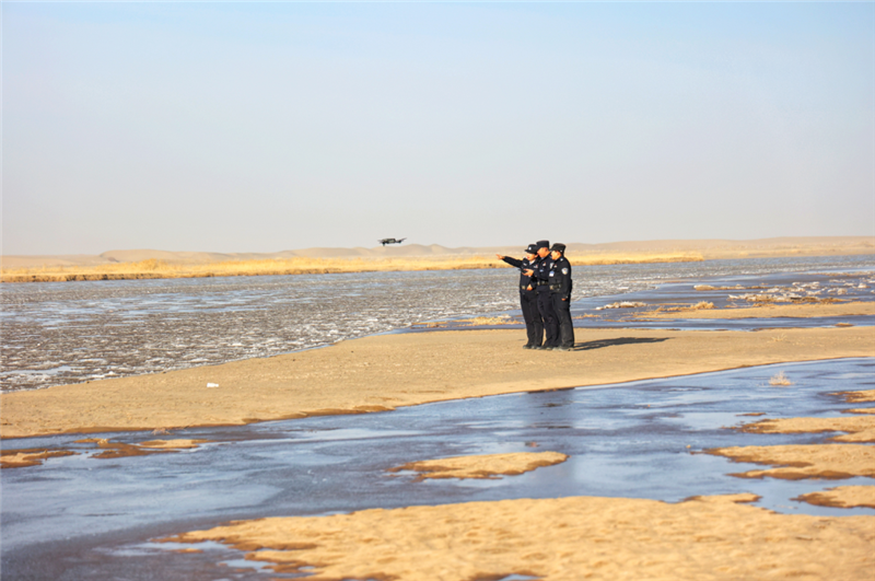 ▲金塔縣公安局城關(guān)派出所民輔警深入轄區(qū)生態(tài)保護(hù)區(qū)開(kāi)展車(chē)巡、步巡、無(wú)人機(jī)巡,構(gòu)建起全域覆蓋、空地聯(lián)動(dòng)、精準(zhǔn)高效的生態(tài)安全防控體系,為織密生態(tài)保護(hù)網(wǎng)保駕護(hù)航。(葛萬(wàn)譽(yù) 攝)