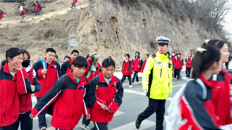 ▲東鄉(xiāng)縣公安局民輔警開(kāi)展護(hù)學(xué)工作,重點(diǎn)在校園周邊開(kāi)展交通疏導(dǎo)、清理違停車(chē)輛、引導(dǎo)學(xué)生安全過(guò)馬路。(完瑪草 攝)