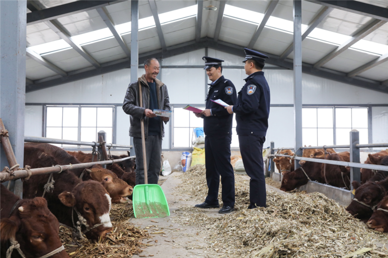 ▲平?jīng)鍪泄簿轴轻挤志终优沙鏊褫o警深入轄區(qū)紅牛養(yǎng)殖基地,開(kāi)展針對(duì)性普法宣傳活動(dòng),進(jìn)一步筑牢轄區(qū)紅牛養(yǎng)殖產(chǎn)業(yè)法治防線,提升廣大養(yǎng)殖戶(hù)的法律意識(shí)。(張鏡鏡 攝)