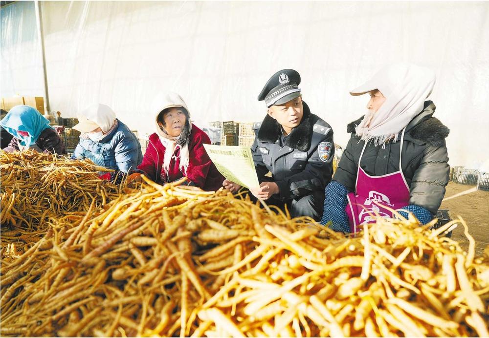 民警向企業(yè)員工宣傳防騙知識(shí)。連日來,山丹縣公安局霍城派出所組織民輔警走進(jìn)轄區(qū)企業(yè),開展集中大走訪、隱患大排查、安全大宣教等活動(dòng)。新甘肅·甘肅法治報(bào)通訊員 尚婧 攝