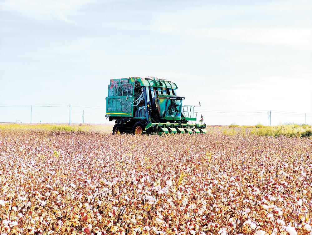 甘肅農墾集團所屬企業(yè)機采棉豐收。