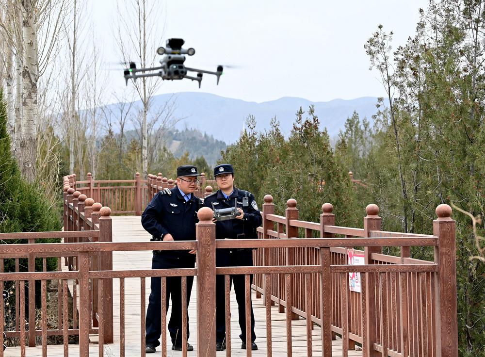 伴隨著螺旋槳的嗡鳴聲,無(wú)人機(jī)高清鏡頭越過(guò)山脊,將進(jìn)山道路、隱蔽角落畫面逐一定格、回傳……大砂溝派出所無(wú)人機(jī)操作員陳雪雯一邊切換畫面一邊介紹:“現(xiàn)在,無(wú)人機(jī)20分鐘就能覆蓋巡查一個(gè)山頭,哪些地方枯枝堆比較多,哪條小路有人靠近,全都看得一清二楚。”