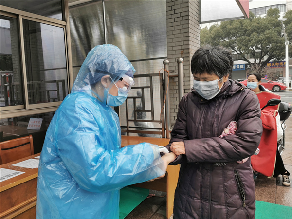 江蘇省常熟市第五人民醫(yī)院監(jiān)察室主任林潔已離開(kāi)臨床崗位很多年,疫情發(fā)生后她選擇在一線,在發(fā)熱病人預(yù)檢分診處,守好第一道關(guān)口。(江蘇省常熟市紀(jì)委監(jiān)委 顧薇 攝)