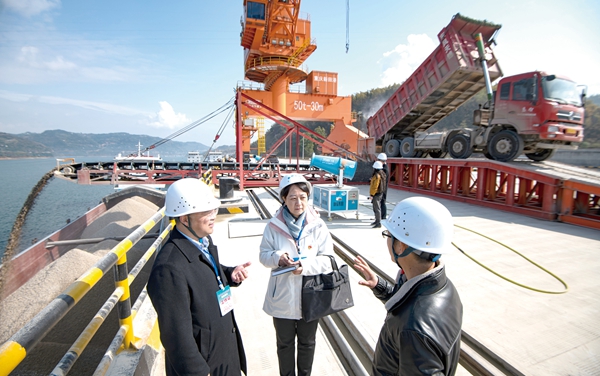 重慶市萬州區(qū)紀委監(jiān)委圍繞推動成渝地區(qū)雙城經濟圈建設跟進監(jiān)督,保障重點工程順利推進、廉潔高效。圖為萬州區(qū)紀檢監(jiān)察干部深入重點水運項目新田港現場了解情況。 攝影/冉孟軍(萬州區(qū)紀委監(jiān)委干部)