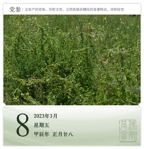 簡介:黨參,多年生纏繞藤本,我國有名的藥食兩用植物,具有健脾益肺、養(yǎng)血生津之功效?,F(xiàn)代藥理研究表明,黨參還具有增強機體免疫力、保護胃腸道黏膜及抗?jié)?、促進造血機能、延緩衰老等多種藥理作用。黨參也是保健品,可入膳食,可做茶也可泡酒?;ü?-10月。文縣產(chǎn)的黨參,歷稱“文黨”,又因其獨具橫紋的顯著特點,亦稱“紋黨”,質(zhì)地優(yōu)良,歷史悠久,生長特殊,加工考究,入藥精道。其藥用價值與人參并列,為質(zhì)高的滋補佳品。