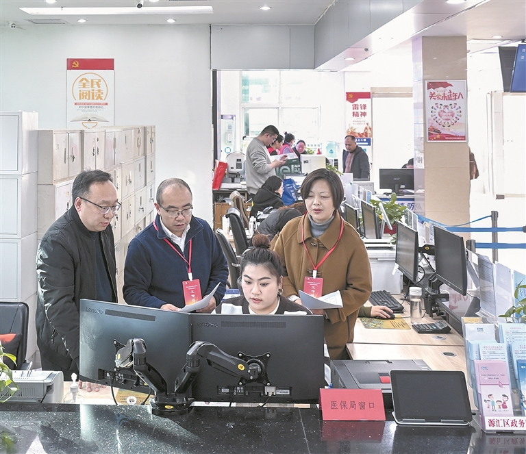 河南省漯河市源匯區(qū)紀委監(jiān)委聚焦醫(yī)?;鸢踩\行等關鍵環(huán)節(jié)開展專項整治,督促主管部門著力整治醫(yī)?;鸸芾碇刑搱竺邦I、騙取套取等違紀違法行為,嚴肅查處監(jiān)管失職失責及背后的不正之風和腐敗問題。圖為近日,該區(qū)紀委監(jiān)委工作人員到區(qū)行政服務中心醫(yī)保局窗口走訪核實相關情況。尤亞輝 攝