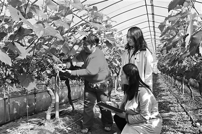 江蘇省東臺市紀(jì)委監(jiān)委開展護(hù)航農(nóng)村特色產(chǎn)業(yè)發(fā)展專項(xiàng)監(jiān)督,深入查糾鄉(xiāng)村振興項(xiàng)目資金監(jiān)管和涉農(nóng)補(bǔ)貼發(fā)放等方面存在的問題。圖為該市紀(jì)委監(jiān)委工作人員在葡萄種植大棚走訪了解相關(guān)情況。王茜 攝