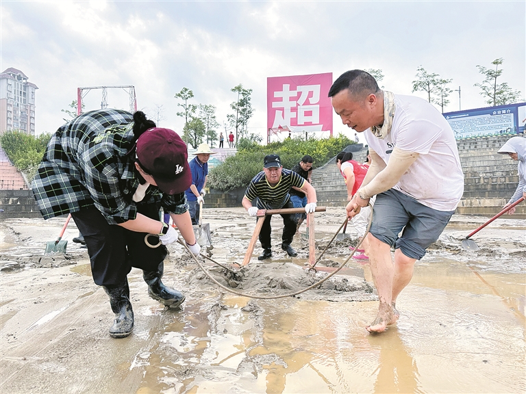 廣西壯族自治區(qū)柳州市融安縣紀委監(jiān)委聞“汛”而動,緊盯防汛統(tǒng)籌協(xié)調(diào)等關(guān)鍵環(huán)節(jié)開展全程監(jiān)督檢查。圖為日前,該縣紀檢監(jiān)察干部在河?xùn)|龍舟廣場開展災(zāi)后清淤工作。覃燕 攝