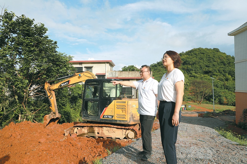 圖為湖南省資興市紀檢監(jiān)察干部在白廊鎮(zhèn)白廊村,對滑坡地質災害隱患點的治理情況進行抽查。記者 劉遠航 攝