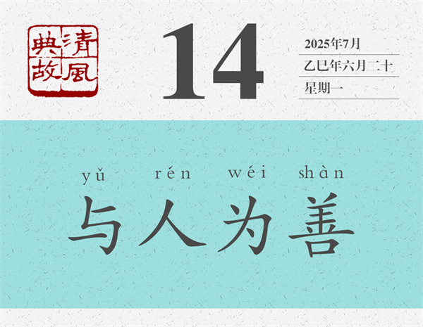 對(duì)“與人為善”中的“與”,有不同的理解。楊伯峻先生認(rèn)為,“與”是偕同的意思,“與人行善”即偕同別人一道行善。朱熹《孟子集注》則認(rèn)為“與,猶許也,助也”,即贊許、幫助的意思。他把最后兩句理解為:“取彼之善,而為之于我,則彼益勸于為善矣,是我助其為善也。能使天下之人皆勸于為善,君子之善,孰大于此。”意思是,取來別人的善,而我付諸實(shí)行,別人就更加努力行善了,這是我?guī)椭猩?。能讓天下都勤于行善,君子的善,再也沒有比這個(gè)更大的了。