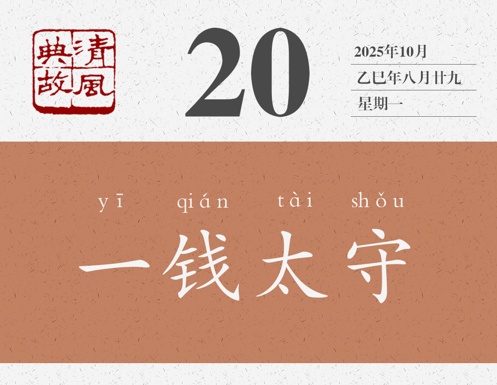 劉寵聽(tīng)了他們的話說(shuō):“我的政績(jī)?cè)趺茨芟衲鷰孜徽f(shuō)得這樣好呢?真是辛苦你們了!”為表示接受他們的美意,他從每個(gè)人帶來(lái)的錢(qián)中挑了一枚收下了。民間還流傳說(shuō),劉寵出了山陰界,就把收下的幾枚錢(qián)投進(jìn)江里,江水頓時(shí)清澈見(jiàn)底。從此之后,此江便被稱(chēng)為錢(qián)清江。劉寵去世后,人們?cè)诮呅蘖艘粋€(gè)亭子就叫“一錢(qián)亭”,為他修建了一座廟就叫“一錢(qián)太守廟”。“一錢(qián)太守”不僅成為劉寵的稱(chēng)號(hào),也成為后世稱(chēng)頌地方官員為民造福、為政清廉的典故。明人高啟詩(shī)《野老行送陳大尹》:“雞鳴相送拜道邊,愿公受取一大錢(qián)。”