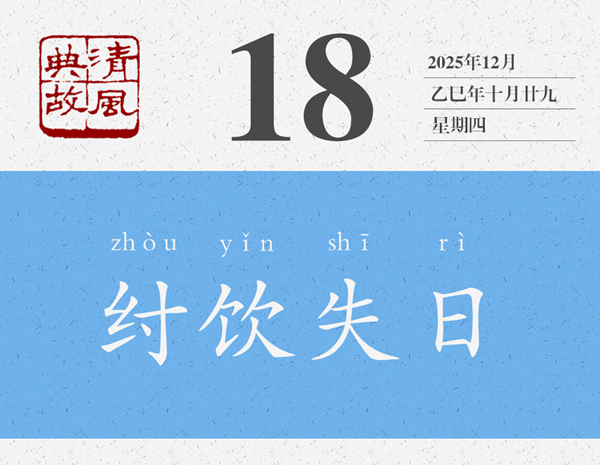 一提起商紂王,大概就會想起沉湎酒色、窮兵黷武、重刑厚斂等等,與之相關(guān)的典故也有酒池肉林、炮烙之刑、牝雞司晨等等。“歡以失日”是他沉湎酒色的又一個故事,往輕處說就是酒醉失憶了,往重處說就是把一切都拋到九霄云外了?;?,即子胥余,商紂王的叔父,官至太師,封于箕,故稱箕子,“殷末三仁”之一,《論語·微子》曰:“微子去之,箕子為之奴,比干諫而死,殷有三仁焉。”箕子曾多次勸諫紂王,但紂王不聽,他心灰意冷,索性披發(fā)佯狂,紂王見此,以為箕子真瘋了,遂將他囚禁起來,貶為奴隸。有了這個背景,就知道箕子為什么要“辭以醉而不知”了。后世則以“紂飲失日”為典,形容生活荒唐混亂,也用來形容不辨時間。黃遵憲詩《倫敦大霧行》:“蒼天已死黃天立,倒海翻云百神集。一時天醉帝夢酣,舉國沉迷同失日。”