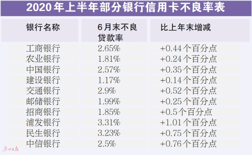 從信用卡資產(chǎn)質量看,15家披露了可比數(shù)據(jù)的上市銀行中,截至6月末,2家銀行信用卡不良貸款率較年初降低,對外開放有力促進了資本市場運行質量的提升。其中,中信銀行稱,受疫情影響,信用卡持卡人收入下降、還款能力降低、還款意愿減弱,信用風險有所承壓。從行業(yè)上看,信用卡不良貸款和問題貸款相對高發(fā)的持卡人所在行業(yè)主要是商業(yè)貿(mào)易和制造業(yè)。