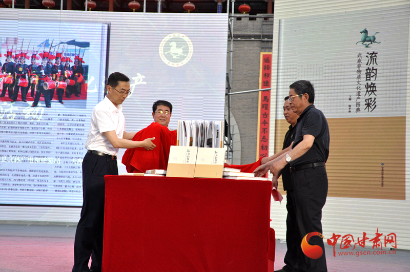 活動中,《流韻煥彩——武威非物質(zhì)文化遺產(chǎn)圖典》揭幕并首發(fā)?!读黜崯ú?mdash;—武威非物質(zhì)文化遺產(chǎn)圖典》是由武威市文體廣電和旅游局組織編寫,讀者出版集團(tuán)旗下的甘肅科學(xué)技術(shù)出版社出版,先后歷時5載。該圖典將散落在武威廣袤大地上的璀璨珍珠串連起來,將牽動著記憶深處的濃濃情思匯聚起來,展示了一個歷史武威、一個文化武威、一個多彩武威,是解讀武威的最好途徑。該圖典共收錄了84個非遺項(xiàng)目,81位項(xiàng)目代表性傳承人,用2000多張圖片和文字介紹,全方位、多角度展示了武威市非遺項(xiàng)目的獨(dú)特性、活態(tài)性、傳承性、流變性、綜合性、民族性、地域性等基本特點(diǎn)。該圖典最大的亮點(diǎn),就是在國家級、省級項(xiàng)目中融入互聯(lián)網(wǎng)思維,加入二維碼視頻鏈接,對項(xiàng)目進(jìn)行動態(tài)視頻展示,讓《圖典》不僅可看、可讀,而且能說會動,能唱會跳,實(shí)現(xiàn)了非遺項(xiàng)目活態(tài)傳承的創(chuàng)新。