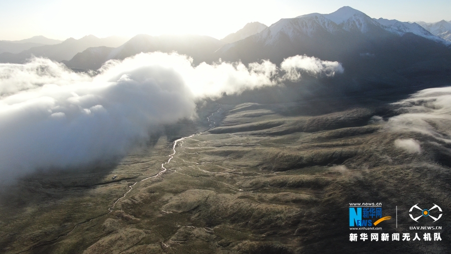 這是8月18日在甘肅省肅南裕固族自治縣境內(nèi)拍攝的祁連山云霧景觀。當(dāng)日,祁連山區(qū)云霧繚繞,從高空俯瞰,如波濤洶涌起伏,與雪山、藍(lán)天相互輝映,美不勝收。(飛手:武雪峰 攝影:安維斌)