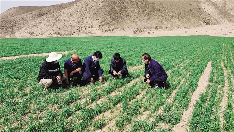 中國(guó)甘肅網(wǎng)5月11日訊 據(jù)蘭州日?qǐng)?bào)報(bào)道記者 程珊珊 文/圖)走進(jìn)皋蘭縣石洞鎮(zhèn)鎮(zhèn)東灣村的田間地頭,只見(jiàn)綠油油的麥田分布在村道兩旁,蘊(yùn)含綠色的期盼。皋蘭縣農(nóng)技中心主任王朝軍又下地了,帶著小鏟子、鋼卷尺等幾件從不離身的家伙。走進(jìn)麥田觀察根系、測(cè)量株高,細(xì)心查看苗情、墑情、肥情以及病蟲(chóng)害情,而他的身邊還圍著不少村里的種糧大戶。