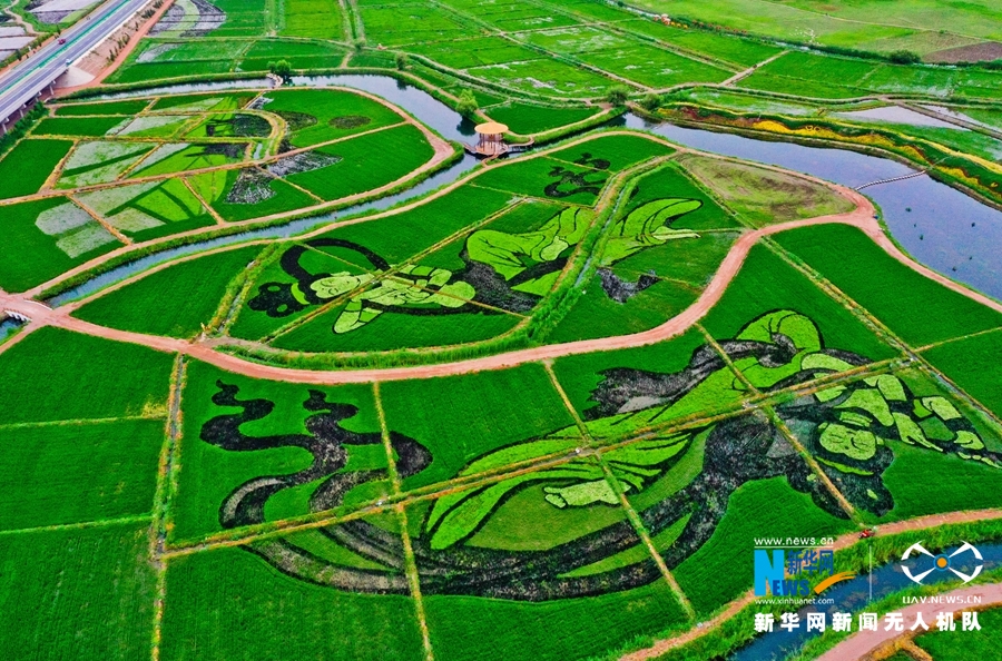 原標題:【“飛閱”中國】甘肅張掖:稻田作畫“繪”風景