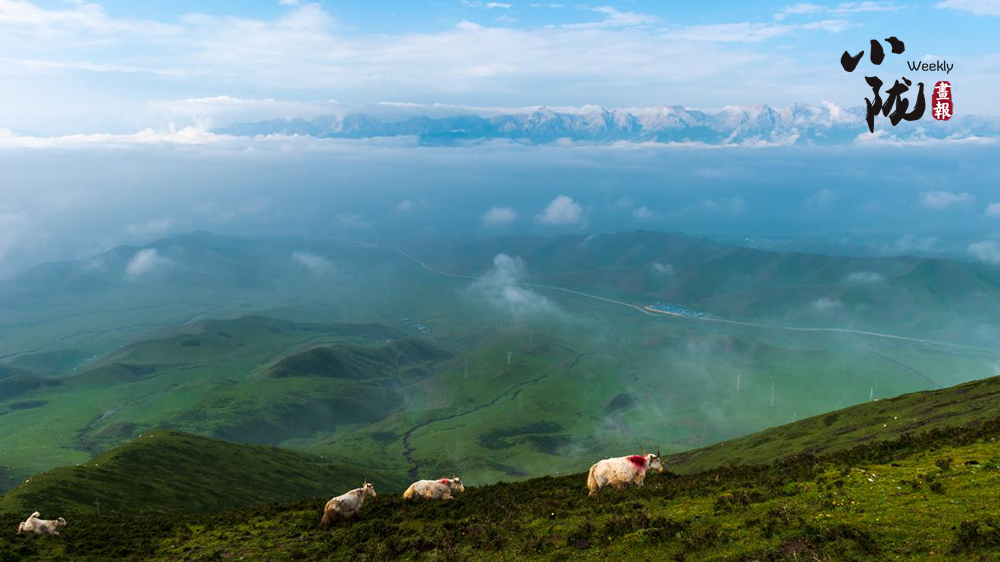 山頂被譽為草原白珍珠的天祝白牦牛和羊群云中漫步,云下蔥蘢牧場若隱若現(xiàn),一幅水墨山水畫卷徐徐呈現(xiàn)在眼前。
