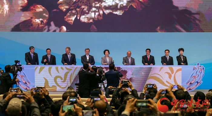 首屆絲綢之路(敦煌)國際文化博覽會(huì)于2016年9月20日在敦煌市隆重舉行。國家主席習(xí)近平發(fā)來賀信,對(duì)敦煌文博會(huì)的召開致以熱烈的祝賀,向出席敦煌文博會(huì)的各國嘉賓和朋友表示誠摯的歡迎。時(shí)任中共中央政治局委員、國務(wù)院副總理劉延?xùn)|出席開幕式宣讀習(xí)近平賀信并發(fā)表主旨演講。來自85個(gè)國家、5個(gè)國際和地區(qū)組織的95個(gè)代表團(tuán)應(yīng)邀出席,66個(gè)外國機(jī)構(gòu)、434位國外賓客參加論壇、文化年展和文藝演出,國內(nèi)16個(gè)省區(qū)市和港澳臺(tái)地區(qū)23個(gè)代表團(tuán)共計(jì)1700多位中外嘉賓參會(huì)。6位外國政要、前政要出席開幕式并發(fā)表演講,23國文化部長和代表出席了圓桌會(huì)議,討論并通過了《敦煌宣言》。