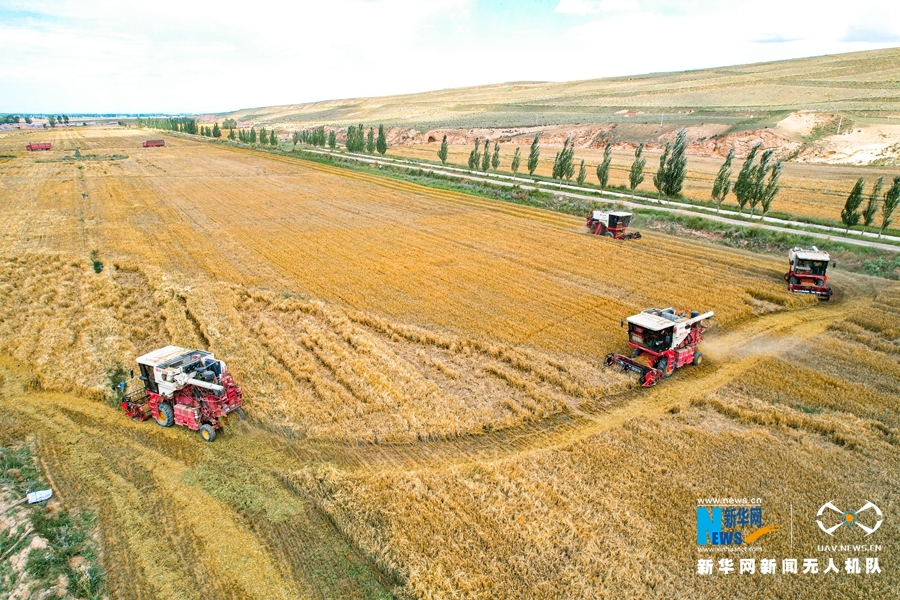 秋天是收獲的季節(jié),甘肅省張掖市民樂(lè)縣洪水鎮(zhèn)費(fèi)寨村的麥田里,金燦燦的麥穗隨風(fēng)搖曳,一輛輛收割機(jī)來(lái)回穿梭,收割、脫粒、裝車,一氣呵成。(拍攝、制作:王曉涇 陳思宏 曹芬華)