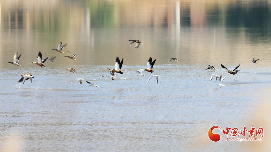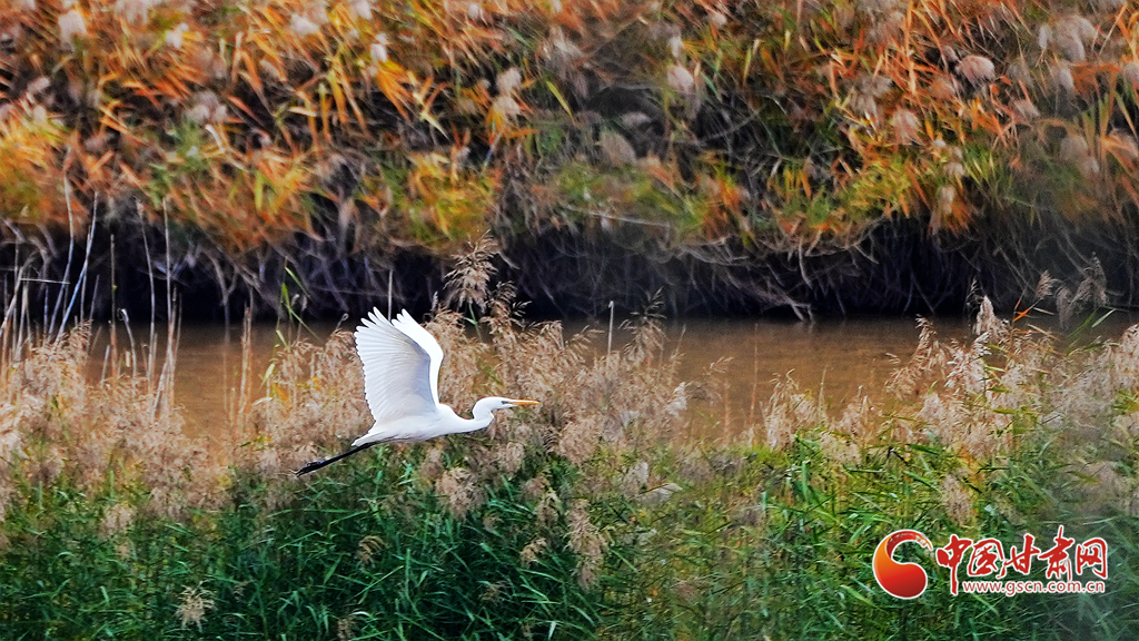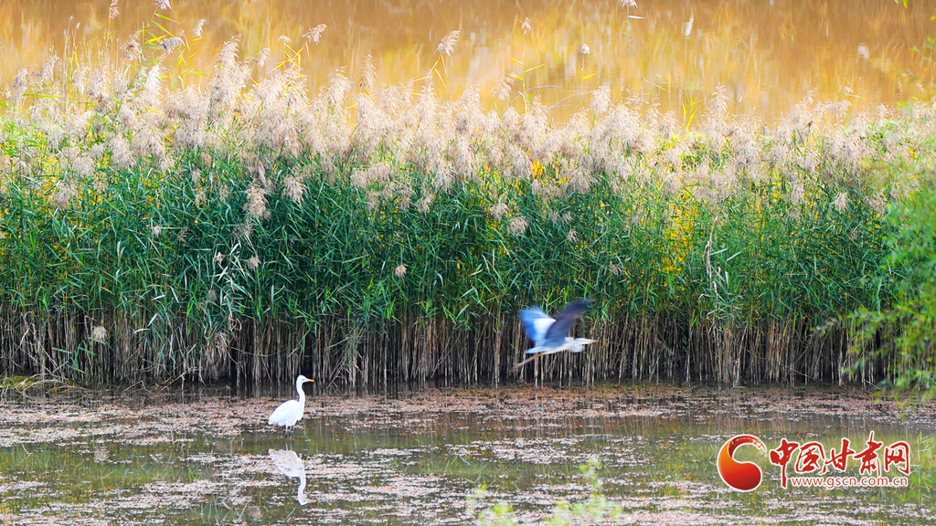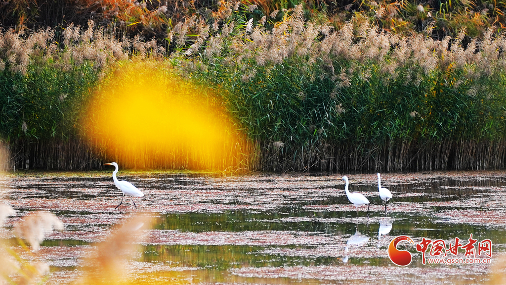 深秋時節(jié),永靖縣太極湖濕地蘆葦搖曳,野鴨戲水,白鷺蹁躚,宛如一幅美妙的秋日畫卷。