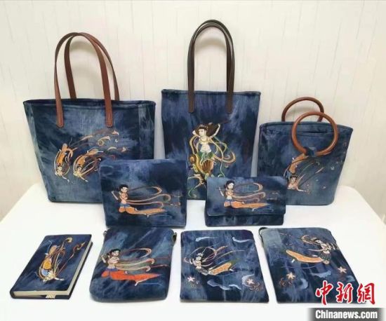 “我創(chuàng)作了《壁畫(huà)》系列作品,包含9幅飛天,結(jié)合扎染、手繪、刺繡工藝,大家反饋很好。”許靜說(shuō),該作品中采用牛仔布料,體現(xiàn)飛天的厚重感和年代感。