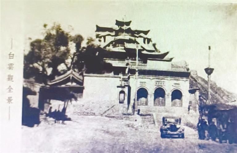 1935年5月,邵元沖考察西北途經(jīng)蘭州,專程赴崔家崖白云觀參訪?!段鞅彪S軺記》載:“依極壽山麓,建白云觀,高三百余級,黃流襟帶,榆柳成蔭,書長無事,凝坐其間,聆水聲潺湲,聽鳥語啾啁,亦足滌塵煩,消炎夏。”邵元沖為此特作《題崔家崖白云觀》詩曰:“玄都峙重崖,清磬林間響。俯瞰大河橫,寒流走混□。柳晚翠煙浮,閑云獨來往。”《西北攬勝》一書中,專門刊載兩幅崔家崖白云觀照片,照片說明曰:“北臨黃河,南接蘭山,形勢雄壯,殿宇倚坡上筑,宏麗精巧,且曲徑回廊,引人入勝,亦蘭垣名勝之一也。” 從老照片中可見,崔家崖白云觀依山而建,頗具氣勢,而且交通便利,邵元沖一行乘坐的小汽車可以直達(dá)觀前。