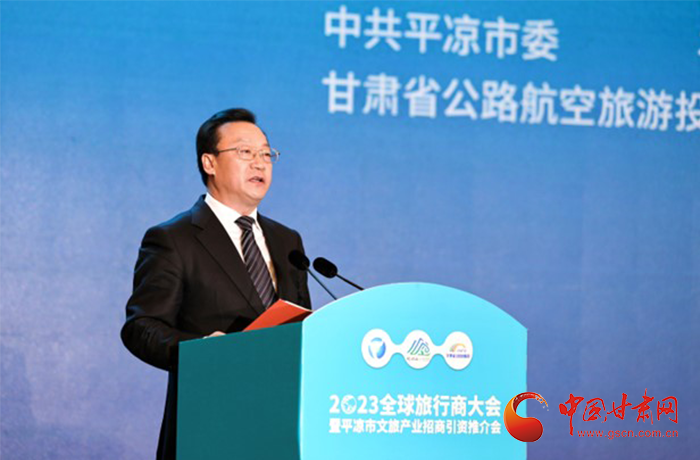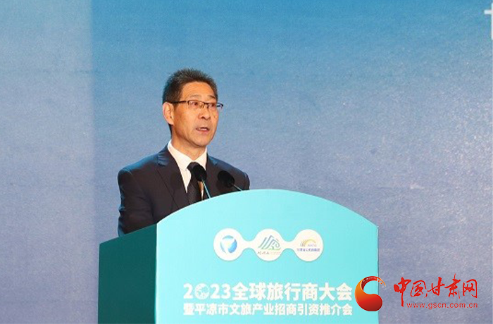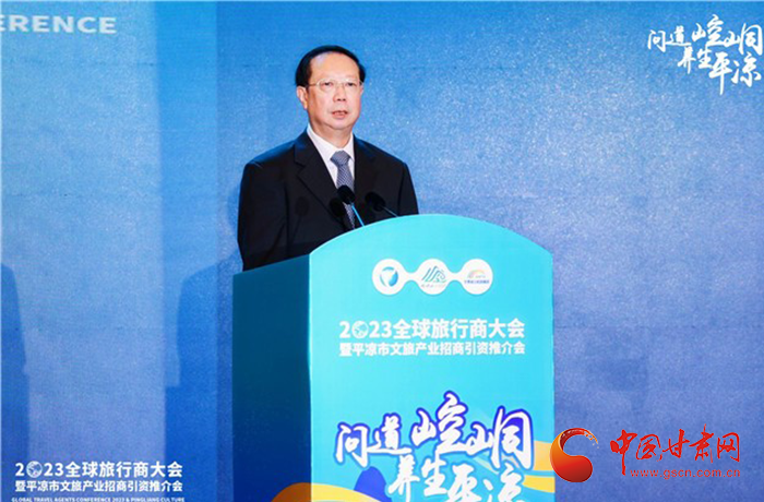何效祖在致辭中說,平?jīng)鍪歉拭C向東開放的“門戶”城市,是風(fēng)景宜人的旅游城市,是甘肅布局的文旅康養(yǎng)基地和支撐“一核三帶”區(qū)域發(fā)展格局中的重要支點(diǎn),擁有崆峒山、大云寺·王母宮、瑤池溫泉等眾多聞名遐邇的人文和自然景觀。今天,我們與平?jīng)鍪形姓?、中?guó)旅行社協(xié)會(huì)、甘肅公航旅集團(tuán)一道搭建平臺(tái),誠(chéng)邀各位嘉賓走進(jìn)甘肅、深入平?jīng)觯M織開展宣傳推介、洽談合作、展示展銷、考察踩線等系列活動(dòng),就是要引導(dǎo)大家深度感知甘肅高質(zhì)量發(fā)展的強(qiáng)烈愿望,實(shí)地觸摸甘肅文旅如火如荼的生動(dòng)實(shí)踐,誠(chéng)懇表達(dá)隴原兒女“視企業(yè)家為最寶貴財(cái)富”的真誠(chéng)合作和赤誠(chéng)服務(wù)之心。我們衷心希望,廣大中外旅行商和文旅專家、文旅企業(yè)家以本次大會(huì)為契機(jī),加強(qiáng)交流互鑒,深化務(wù)實(shí)合作,加大在甘投資力度,組織更多游客到甘肅觀光旅游,帶動(dòng)更多優(yōu)質(zhì)文旅企業(yè)和項(xiàng)目落戶甘肅,合力譜寫甘肅文旅高質(zhì)量發(fā)展的嶄新篇章!