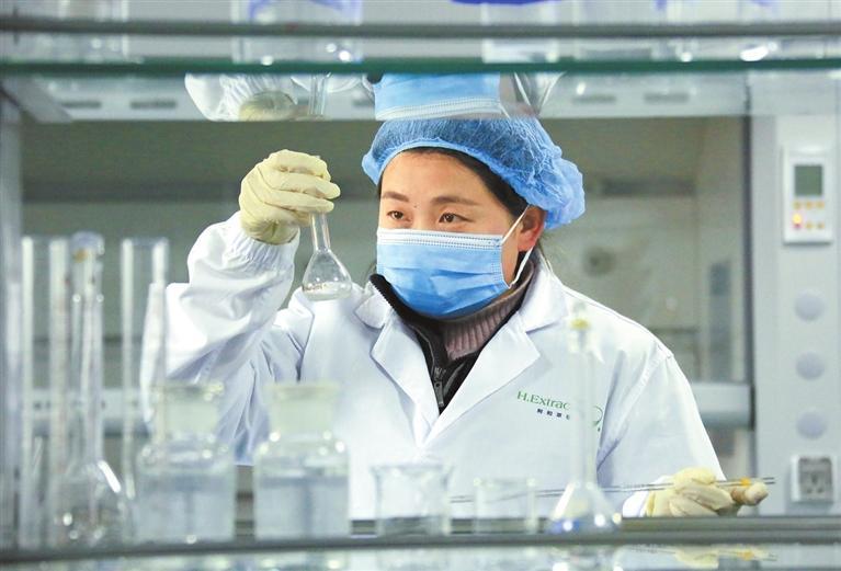 成縣紅川鎮(zhèn)的甘肅暖山農(nóng)業(yè)科技有限公司葉黃素提取車(chē)間里,工人們查看設(shè)備運(yùn)行情況