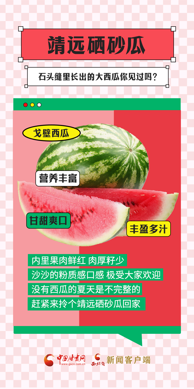 甘肅是中國自然地理多樣的省份,從隴南一直到敦煌,跨越了三大高原地帶、四大氣候類型,日照充足、干燥多風(fēng)、降水量少、晝夜溫差大,這種獨(dú)特的氣候特點(diǎn),十分適宜水果的生長。盛夏時(shí)節(jié),甘肅各地時(shí)令瓜果陸續(xù)上市,不僅豐富了百姓的“果盤子”,也鼓起了農(nóng)民的“錢袋子”。“瓜果經(jīng)濟(jì)”在隴原大地上助力鄉(xiāng)村振興。