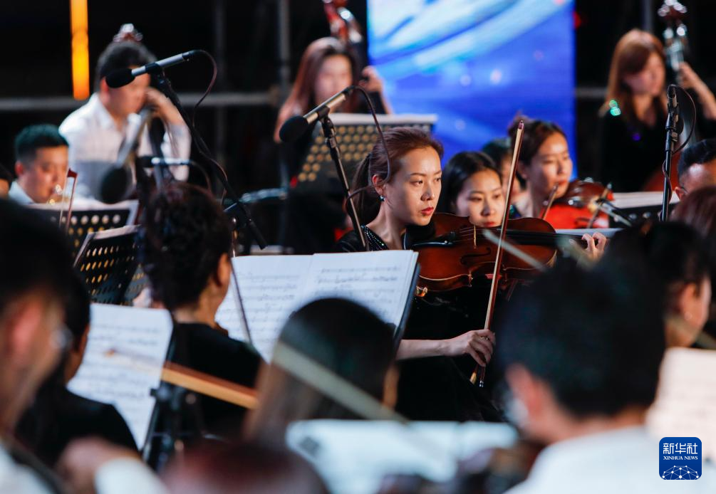 7月31日,來自甘肅省歌劇院、甘肅交響樂團(tuán)的演奏者們?cè)诒硌莨?jié)目。新華社記者 方欣 攝
