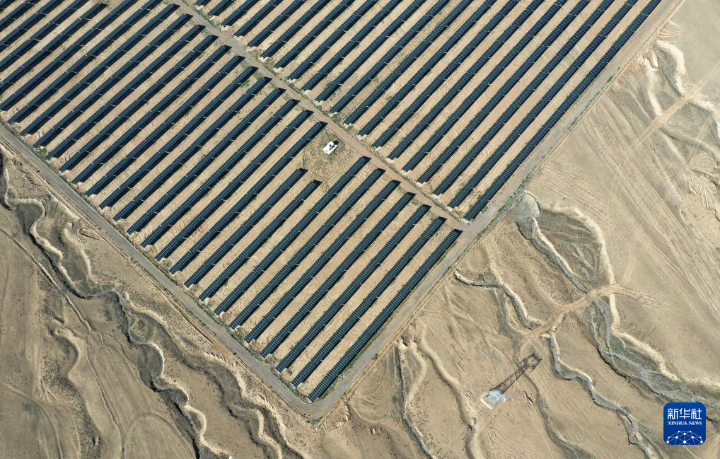 8月11日,工作人員在中國能建張掖甘州南灘30萬千瓦光伏發(fā)電項目巡檢。新華社記者 金良快 攝