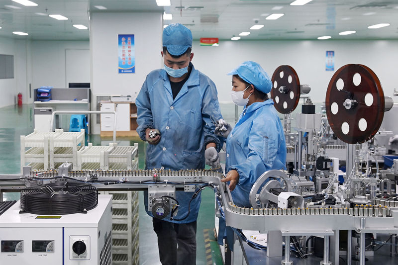 位于金昌經(jīng)濟(jì)技術(shù)開發(fā)區(qū)的甘肅金宏翔新能源有限公司,工人在電池生產(chǎn)線上作業(yè)。記者 范培珅 攝