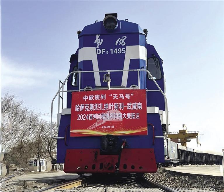 中國甘肅網(wǎng)1月18日訊 據(jù)蘭州晚報(bào)報(bào)道 日前,一列搭載62個集裝箱1600多噸,貨值406萬元的哈薩克斯坦進(jìn)口糧飼回程班列抵達(dá)武威南站,這是今年中鐵蘭州局集團(tuán)公司蘭州貨運(yùn)中心首趟中歐進(jìn)口糧飼專列。此趟班列在蘭州貨運(yùn)中心、市商務(wù)局和金昌海關(guān)共同謀劃下,從哈薩克斯坦扎納葉斯利出發(fā),由阿拉山口入境,歷時8天,順利抵達(dá)武威南貨場。