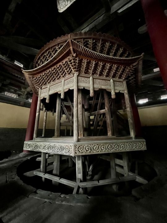 轉(zhuǎn)輪藏指可以轉(zhuǎn)動的經(jīng)書架。它始建于北宋、直徑達(dá)7米,榫卯相嵌形成一座古樸的八角亭。八根方柱自頂部向下收縮,將重量匯至一點(diǎn)。“如此巨大的木建筑,一兩人就能推動,常令游客驚嘆。”正定縣隆興文化旅游發(fā)展有限公司講解員王瑋瑤說。