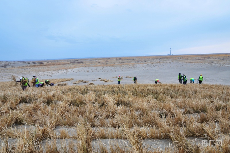 金塔縣防沙治沙現(xiàn)場(chǎng)(央廣網(wǎng)記者 李紅軍 攝)