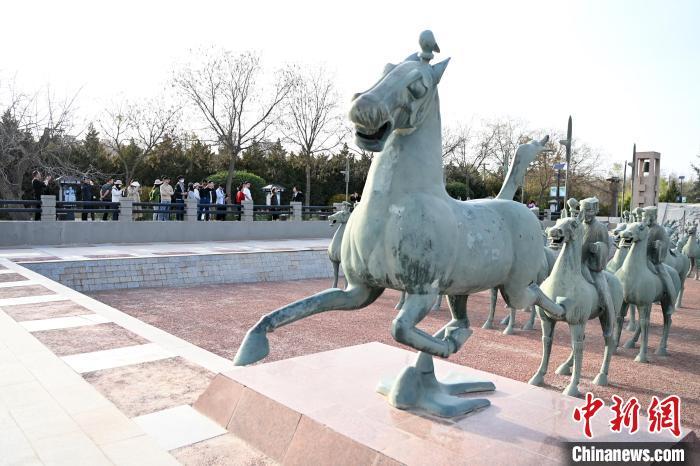 2024年4月17日,游客在中國旅游標(biāo)志“馬踏飛燕”出土地雷臺(tái)漢墓內(nèi)參觀。九美旦增 攝