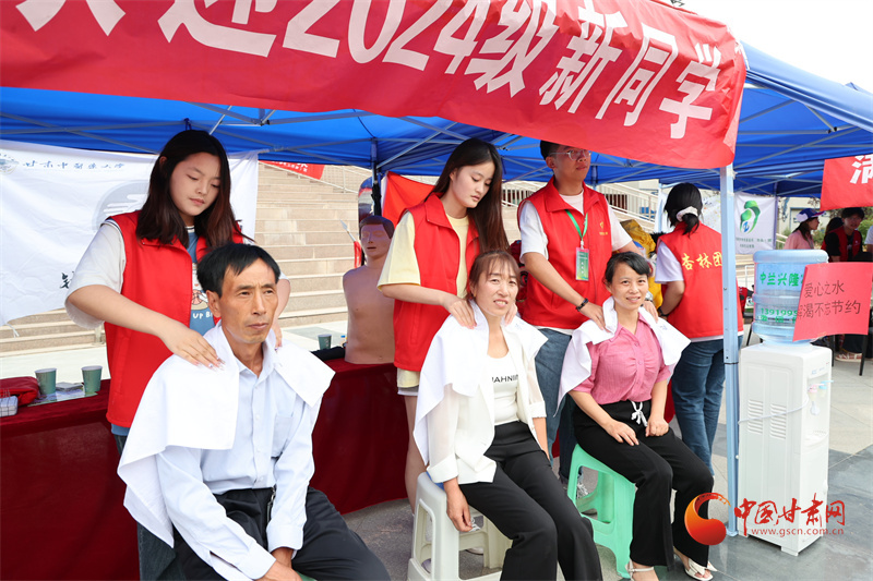 近水樓臺先得月,甘肅中醫(yī)藥大學(xué)校園社團(tuán)依托中醫(yī)藥專業(yè)優(yōu)勢,在迎新點開設(shè)推拿按摩志愿服務(wù),以專業(yè)手法解決新生和家長的旅途疲勞。
