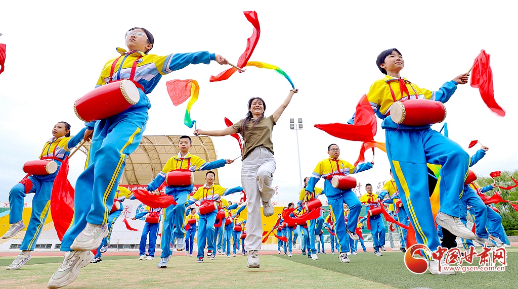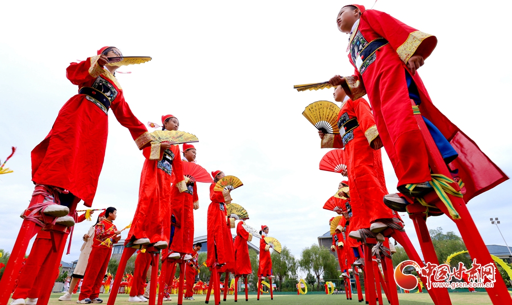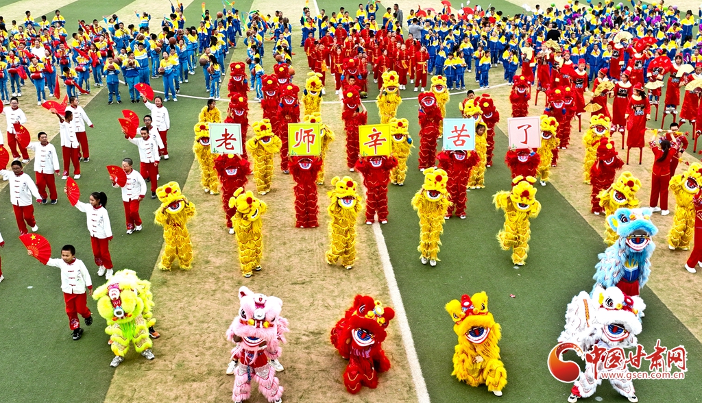 9月5日,在張掖市甘州區(qū)大成學(xué)校體育場(chǎng)上,舞龍、舞獅、踩高蹺、扇子舞、威風(fēng)鑼鼓、腰鼓、武術(shù)等38個(gè)社團(tuán)依次進(jìn)行成果展演,師生們?cè)趥鞒兄腥A民族的優(yōu)秀文化,探索向美而行的新路徑中,歡慶即將到來的第40個(gè)教師節(jié)。