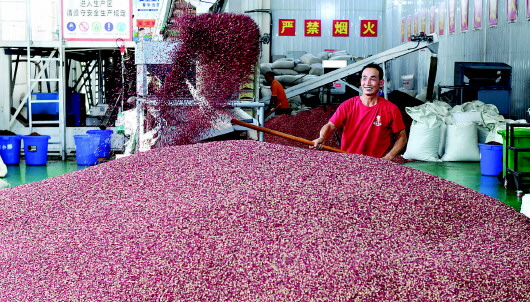 9月10日,甘谷花椒集散交易中心工人正在加工收購的花椒。甘谷花椒種植歷史悠久,所產(chǎn)花椒色澤鮮紅、粒大肉厚、麻味悠長、清香濃郁,是國內(nèi)紅花椒中的精品。目前,全縣花椒種植面積22萬畝,預(yù)計(jì)年產(chǎn)量1.6萬噸以上,產(chǎn)值11.5億元以上,花椒樹真正變成了群眾致富的“搖錢樹”。 新天水·天水日報記者李旺旺攝