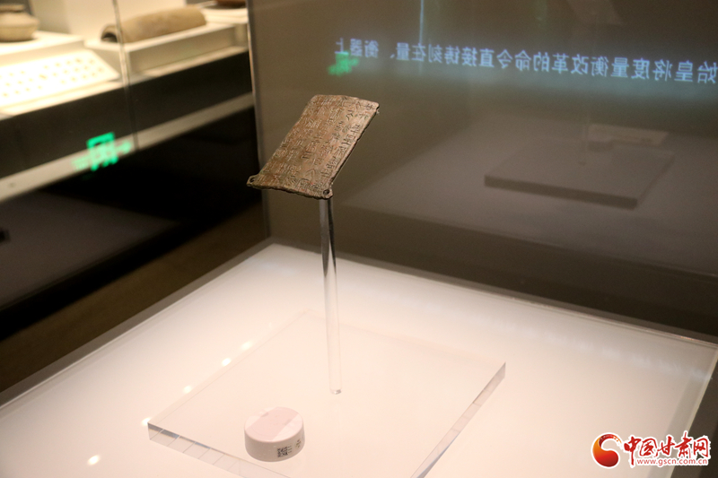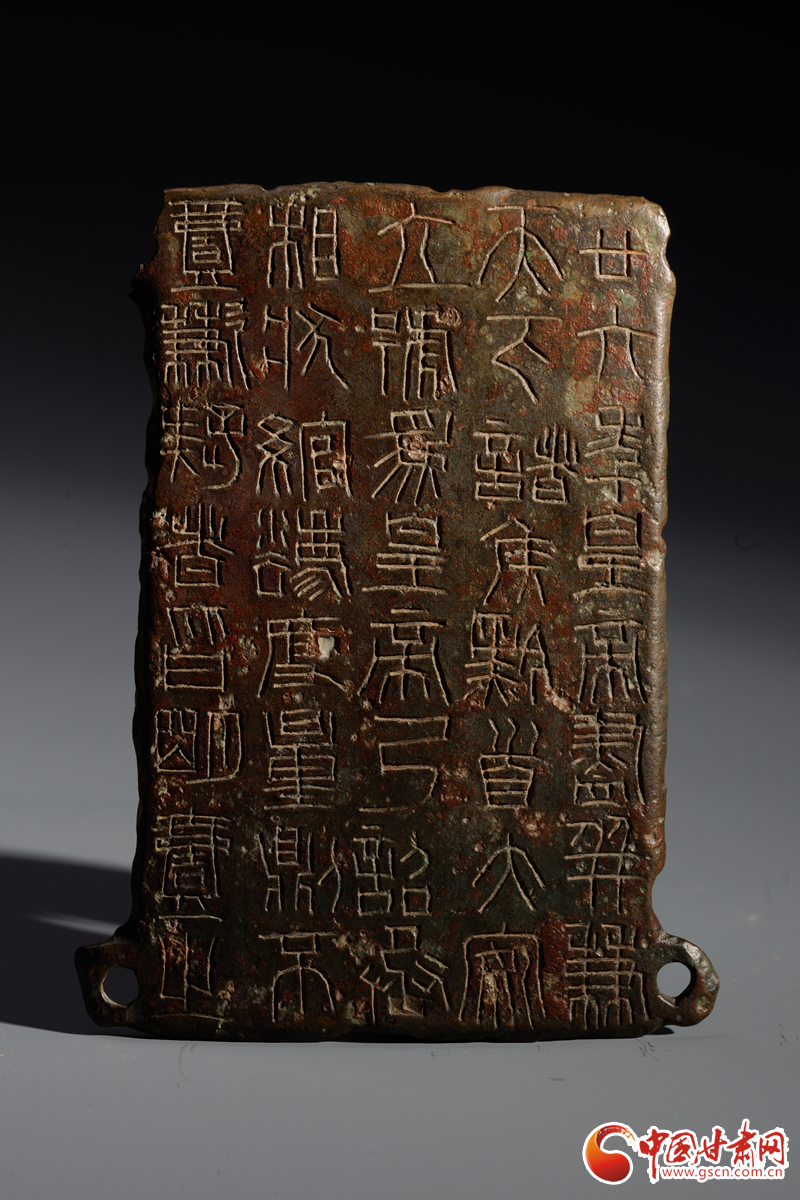 中國(guó)甘肅網(wǎng)9月14日訊(西北角·中國(guó)甘肅網(wǎng)記者 孫珩力)秦詔版,是指刻有秦始皇或秦二世統(tǒng)一度量衡詔書(shū)的銅版,有的鑲在鐵權(quán)、銅權(quán)上;有的四角有孔,用以釘在木頭的量器上。目前我國(guó)出土的刻有秦始皇詔文的遺物有銅橢量、銅錢等,不僅數(shù)量多而且分布也廣,而像這樣把詔文刻在銅版上的詔版形式在全國(guó)極為罕見(jiàn),鎮(zhèn)原縣博物館收藏的就是其中之一,可謂稀世珍品。
