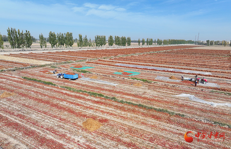 “我們種植的辣椒品種主要是朝天椒,成熟后需要先割倒擺放在壟溝上晾曬,一方面是辣椒干透后機(jī)械脫粒,另一方面也是為了防霜凍。這些朝天椒都是訂單辣椒,等過幾天曬好后由企業(yè)統(tǒng)一收購(gòu),直接運(yùn)走,每畝產(chǎn)量500公斤左右,每畝收益能達(dá)到5000元以上。”種植大戶韓克紅說。