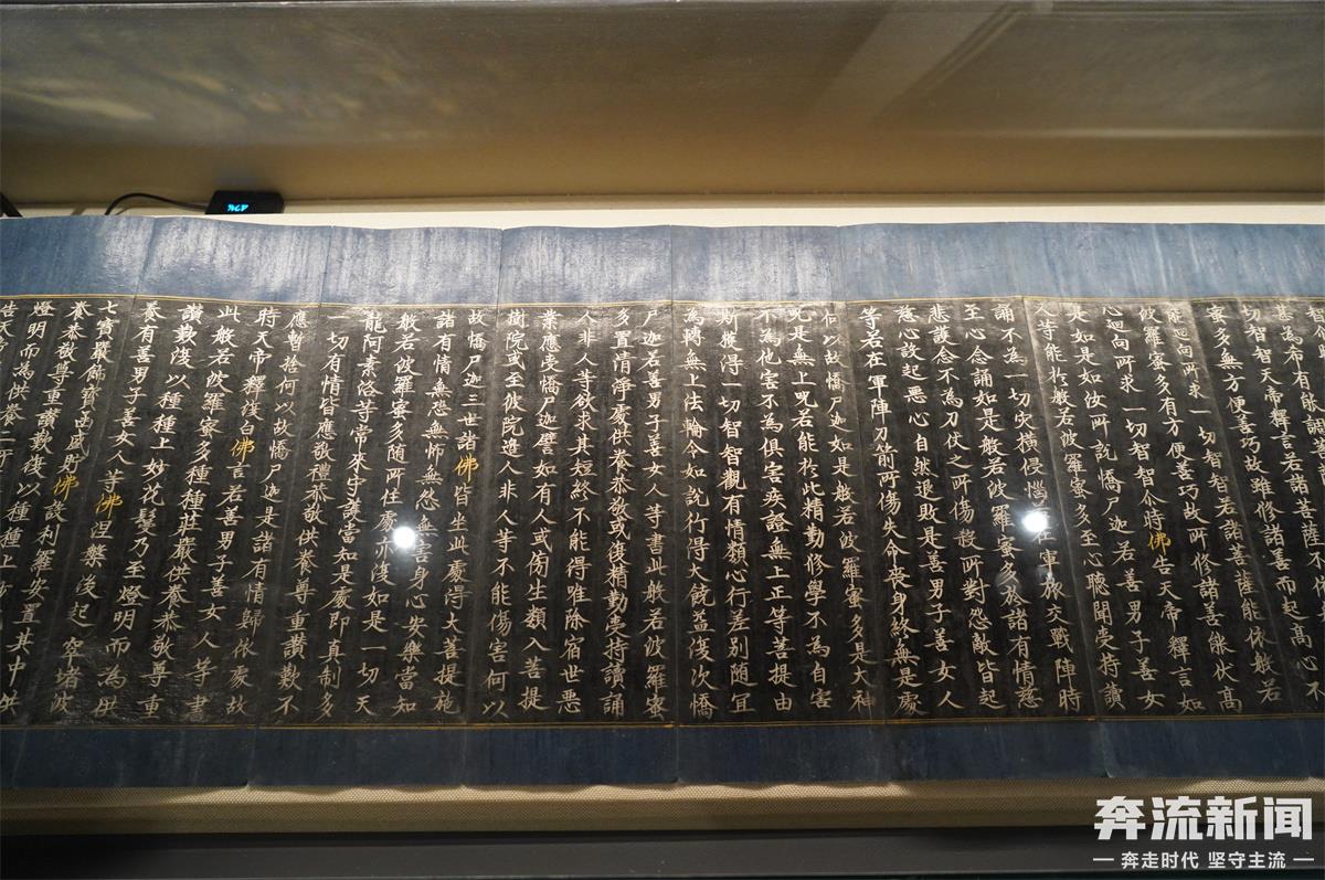 金銀書(shū)《大般若波羅蜜多經(jīng)》的由來(lái)要追溯到明正統(tǒng)六年(公元1441年),當(dāng)時(shí)的欽差鎮(zhèn)守陜西甘肅等處御馬監(jiān)太監(jiān)兼尚寶監(jiān)太監(jiān)魯安公王貴,會(huì)集眾多高僧大德與書(shū)畫(huà)名士,以寺藏御賜《北藏》為藍(lán)本,用金銀粉書(shū)寫(xiě)、綾錦裝幀了一部《大般若波羅蜜多經(jīng)》共600卷。經(jīng)文書(shū)法結(jié)體周正,字體清雅俊美,使金銀經(jīng)《大般若波羅蜜多經(jīng)》充滿經(jīng)久不褪、華美莊嚴(yán)的金粉之氣。