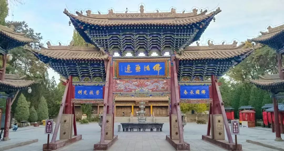 17日下午,當采訪團大巴車在夕陽余暉的照射下,風馳電掣般駛?cè)霃堃创蠓鹚峦\噲鼍従復7€(wěn)后,我們見到了多次對接的采訪團成員。因為行程緊張,大家中午在武威午餐后,沒有休息,乘車近4個小時,風塵仆仆來到了張掖,就是想目睹這座始建于西夏崇宗永安元年,供奉著全亞洲最大室內(nèi)木胎泥塑臥佛的皇家寺院。
