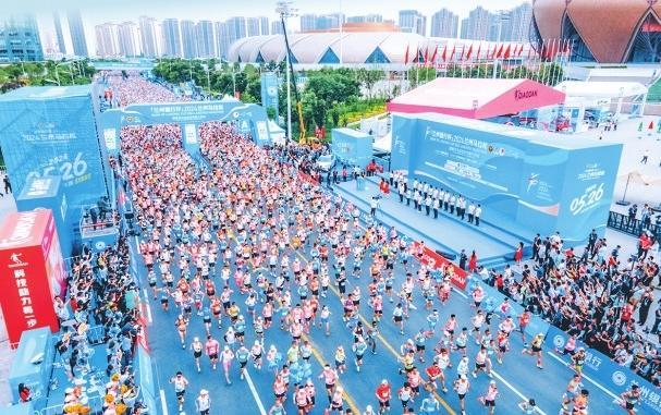 2024年5月26日7時30分,“蘭州銀行杯”2024蘭州馬拉松在蘭州奧體中心鳴槍開賽,來自美國、德國、澳大利亞、肯尼亞、韓國等22個國家和地區(qū)以及全國各地的4萬名選手相聚金城,用奔跑釋放生命活力。2024年是蘭州馬拉松新十年的開端之年,首次采用“全半程混合分區(qū)”的出發(fā)機制,并對賽道進行優(yōu)化升級,將絲路文化、黃河文化融入參賽服和獎牌的設計中,還開展甘肅省博物館、甘肅簡牘博物館、蘭州市博物館、讀者雜志社的文創(chuàng)展銷活動,邀請參賽選手免費參觀9個景區(qū),為廣大選手提供更加優(yōu)質、精彩的賽事體驗。