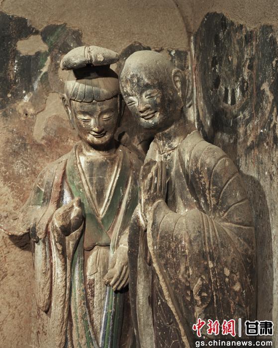 圖為開鑿于北魏時期的麥積山石窟第121窟,“竊竊私語”的菩薩與弟子。(資料圖)麥積山石窟藝術研究所供圖